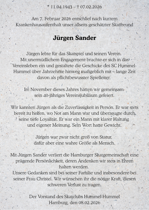/ Hamburg e. V. Mitglied im Deutschen Skatverband.